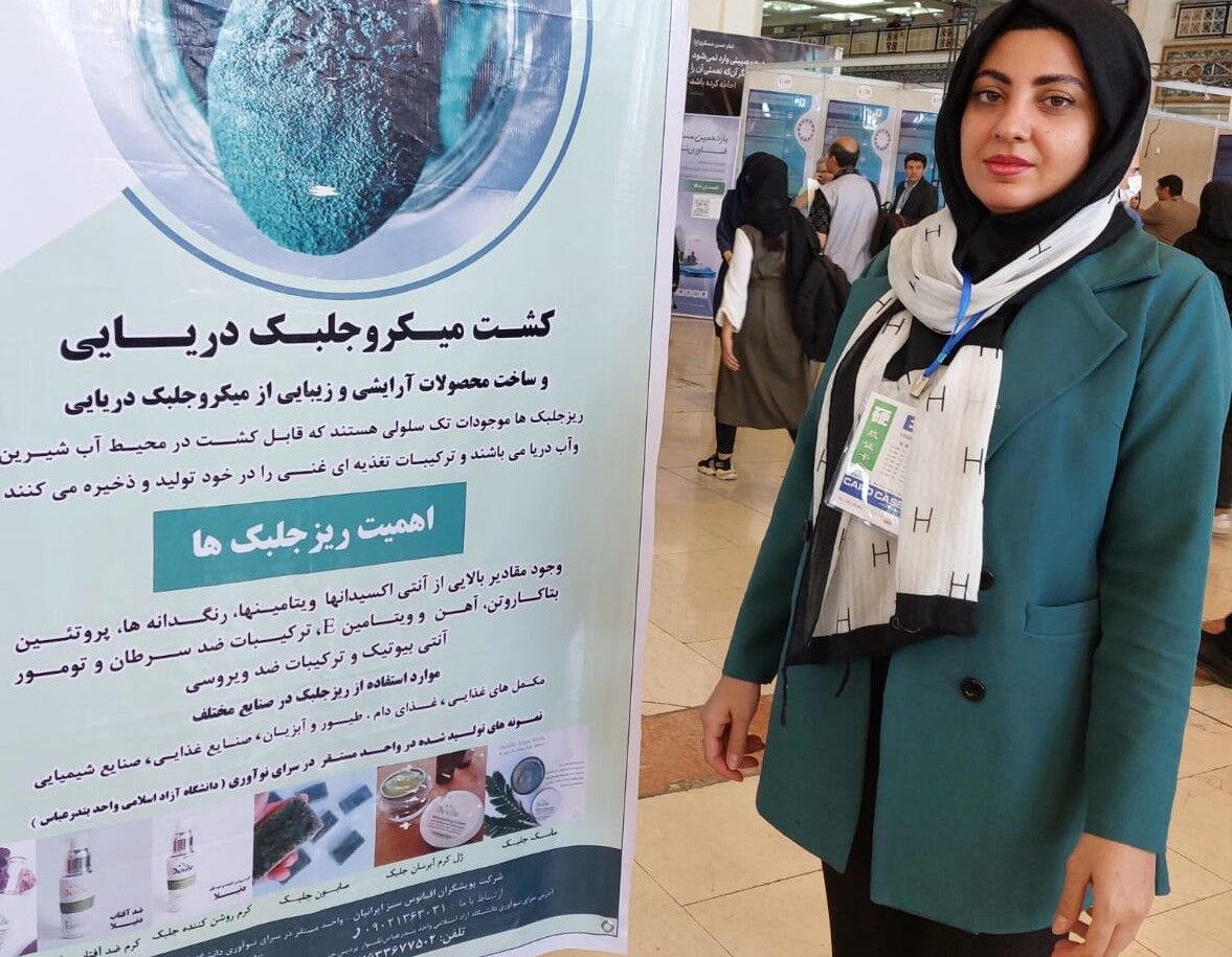 سیما فیاضی دانشآموخته رشته زیستشناسی از دانشگاه تربیت مدرس در مقطع کارشناسی ارشد همراه با دو پژوهشگر دیگر حوزه زیستشناسی با ایجاد یک واحد فناور موفق به تولید میکروجلبکها در مرکز رشد دانشگاه آزاد هرمزگان شده است. این پژوهشگران قصد دارند محصولات دیگر از شاخه جلبکها شامل خوراکیها، نوشیدنیها، محصولات دارویی و بهداشتی و آرایشی شامل ماسک و کرم آبرسان پوست را نیز از جلبکها تولید کنند تا نشان دهند از جلبک محصولات مختلفی مانند کیک، آبنبات و حتی نوشابه می توان تولید کرد.